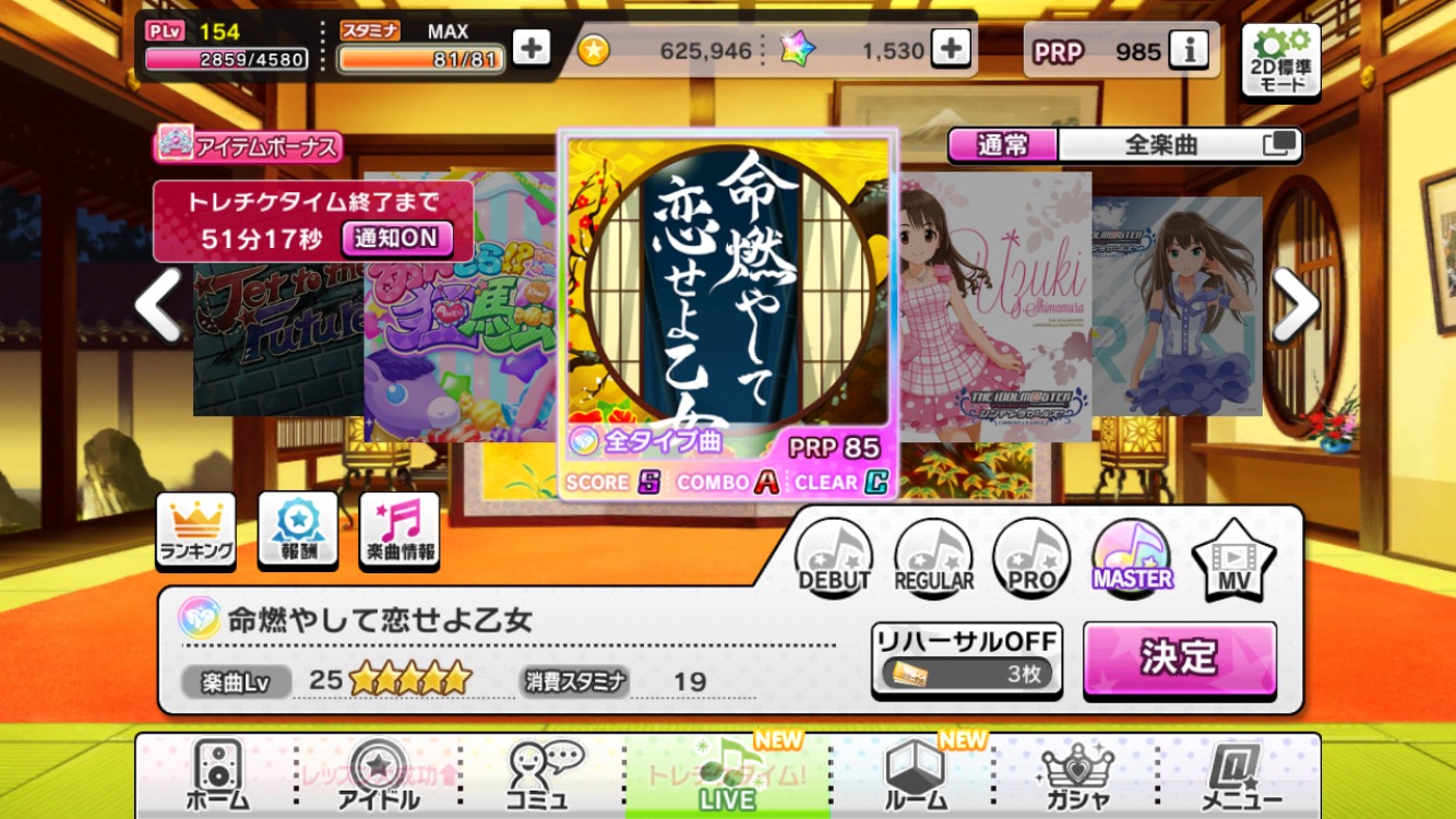 「命燃やして恋せよ乙女」が通常楽曲としてプレイ可能に
