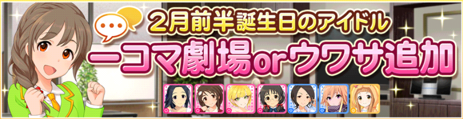 「2月前半」誕生日のアイドルの1コマ劇場とウワサが追加!