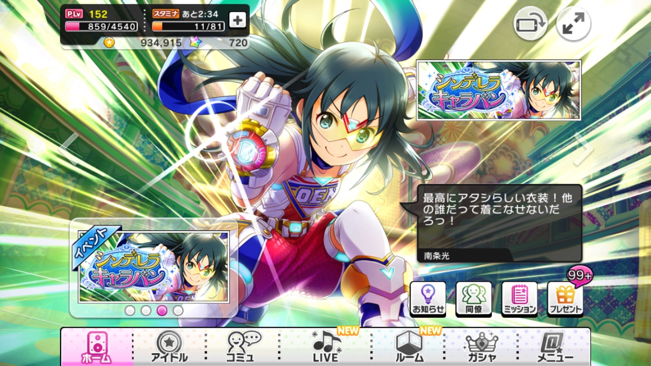 『アイドルマスター シンデレラガールズ スターライトステージ(デレステ)』の攻略情報をお届け!今回は「シンデレラキャラバン」ドロップ報酬のSR「[ミンナノミカタ]南条光」について紹介!