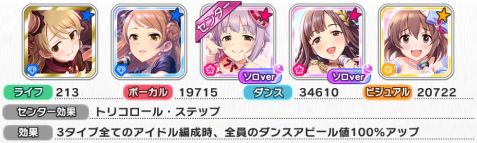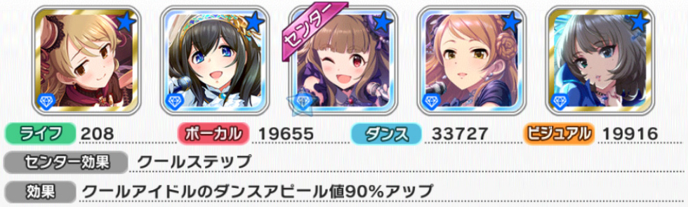 センター効果 | クールステップ クールアイドルのダンスアピール値60%アップ |