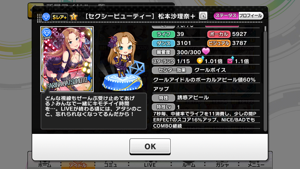 センター効果 | クールアビリティ クールアイドルの特技発動確率30%アップ |