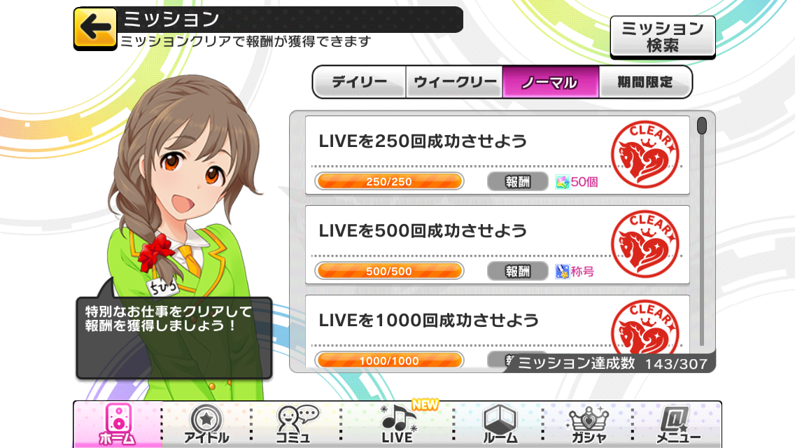 ノーマルミッションに検索機能が追加!右上の「ミッション検索」タブから設定可能です。