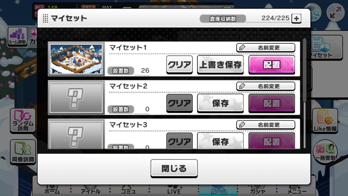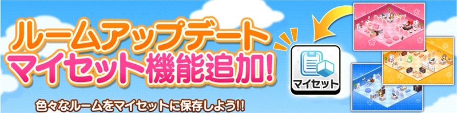 ルームレイアウトの保存、再配置ができる「マイセット」が追加!お気に入りのレイアウトを残しながら、さらに手軽にコーディネートを楽しめるようになります。