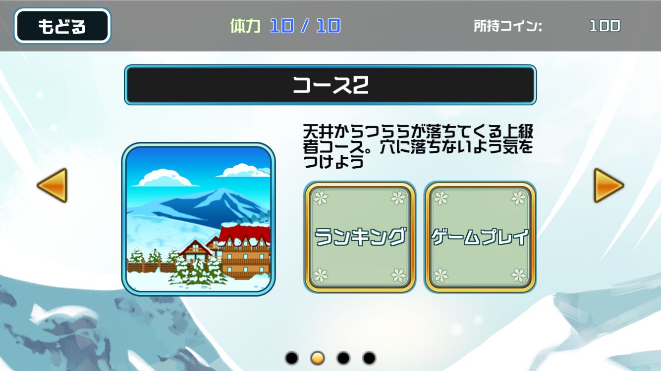 本作は、メニュー画面から今回の「スノウミク2016フェスティバル」のミクの曲が聴けて、すごくノリのいい感じです。ステージは全部で4つステージがあります。君は果たしてすべてクリアできることができるかな?
