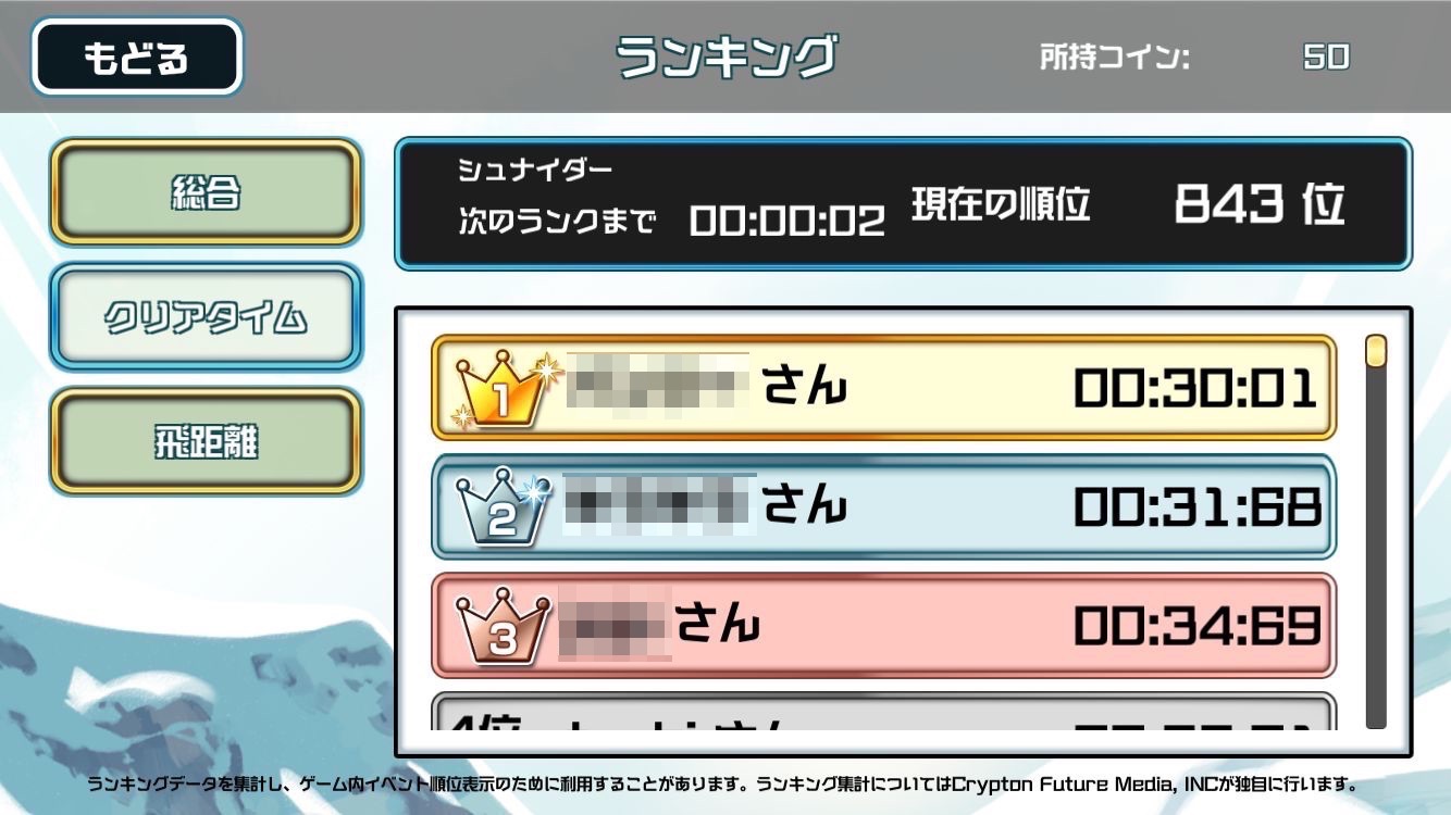 このランキングは各ステージのゴールタイムと、どこまで飛べたか飛距離を競うことができます。これは白熱するしかないでしょう!!