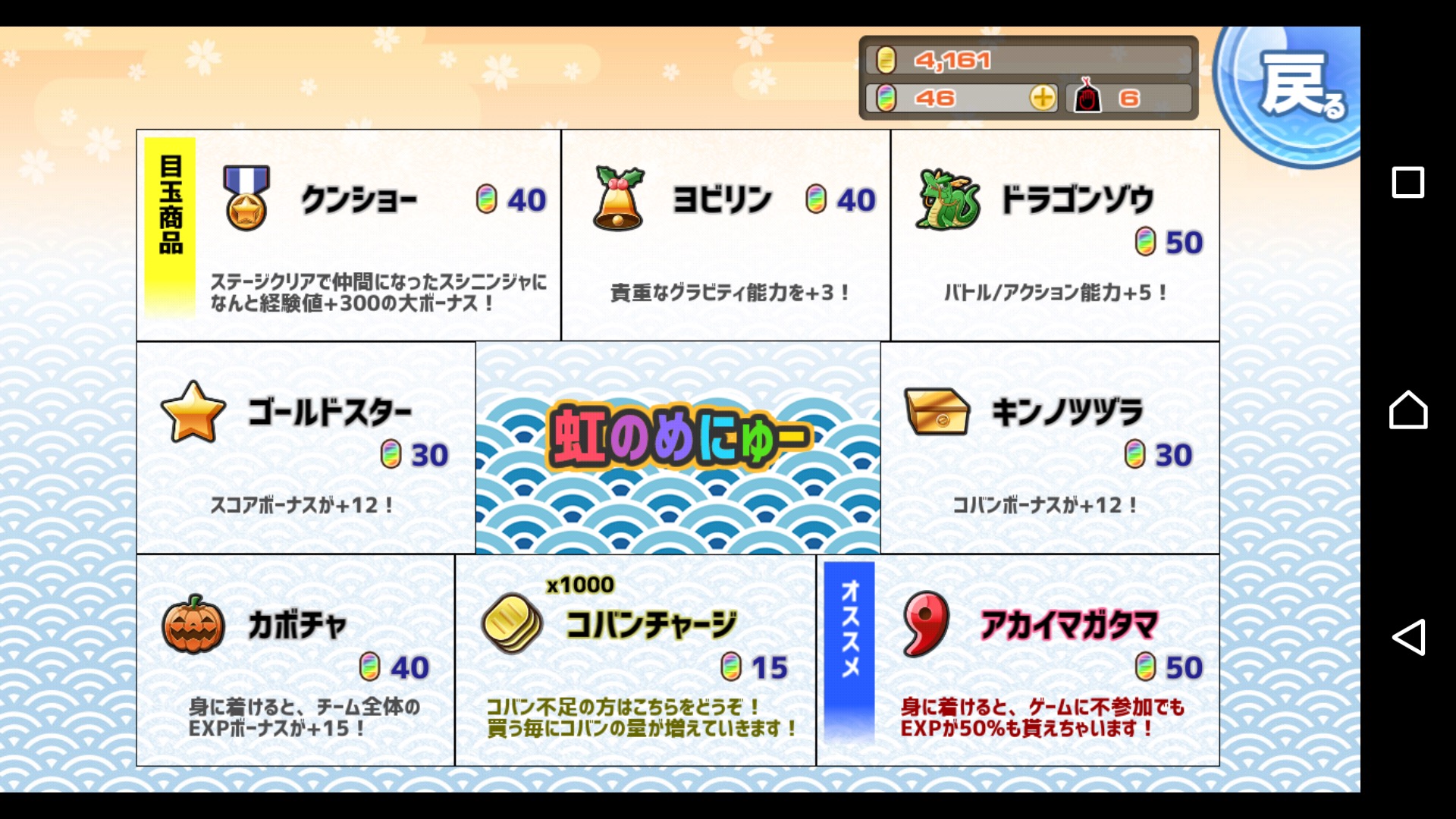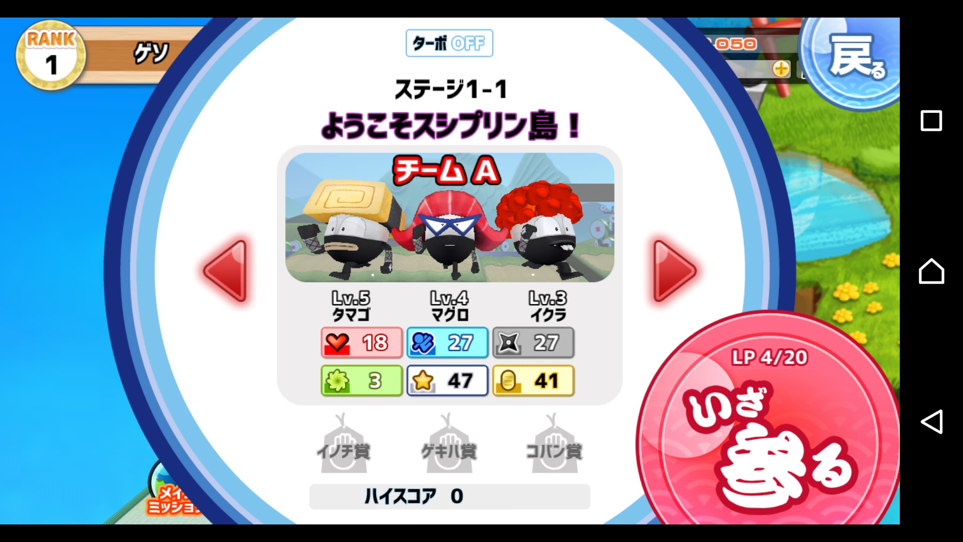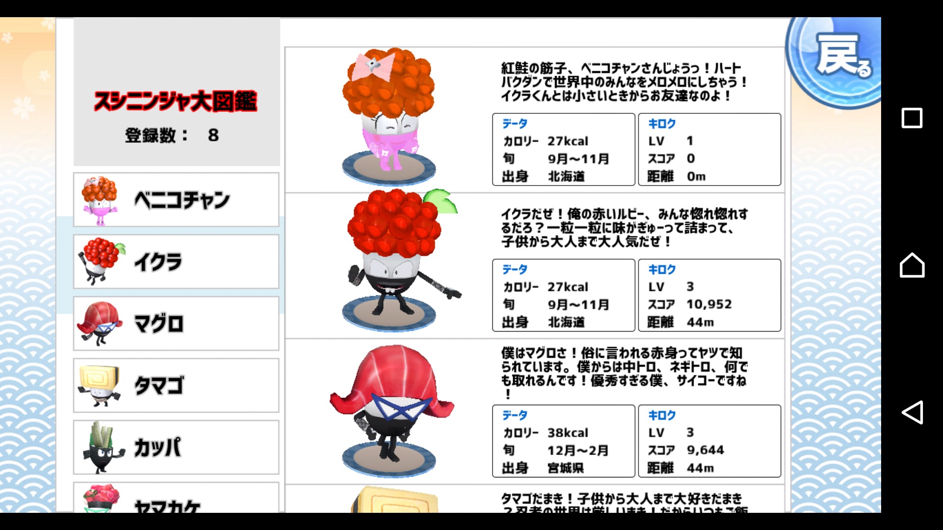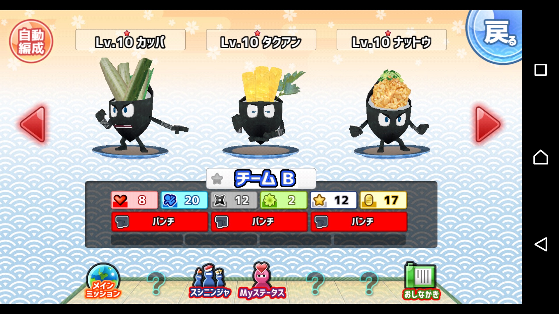 ステージクリアや、ガチャなどで新しいスシニンジャを獲得可能!色んな寿司ネタが忍者になっており、ビジュアルだけでも充分に楽しめます。