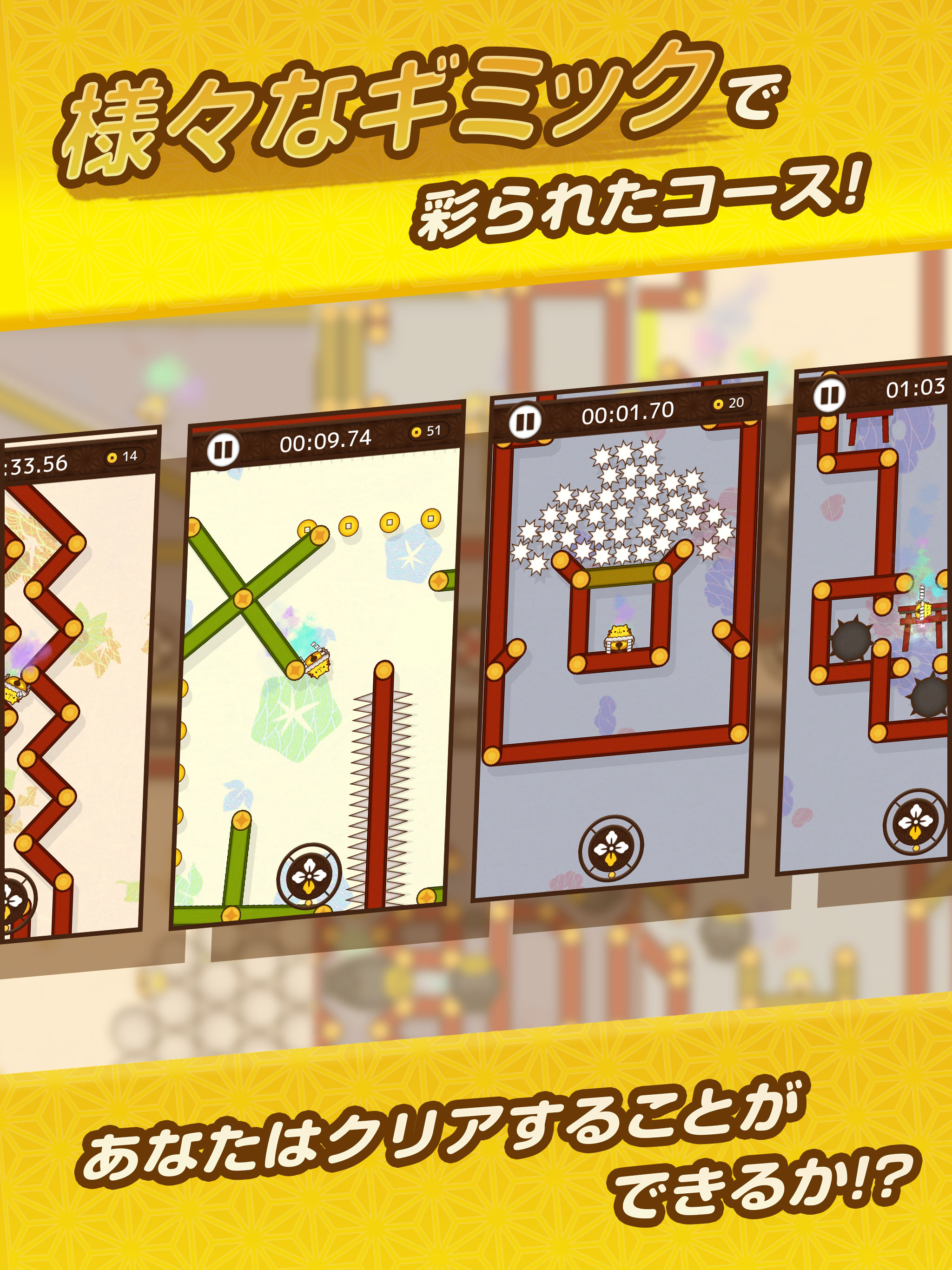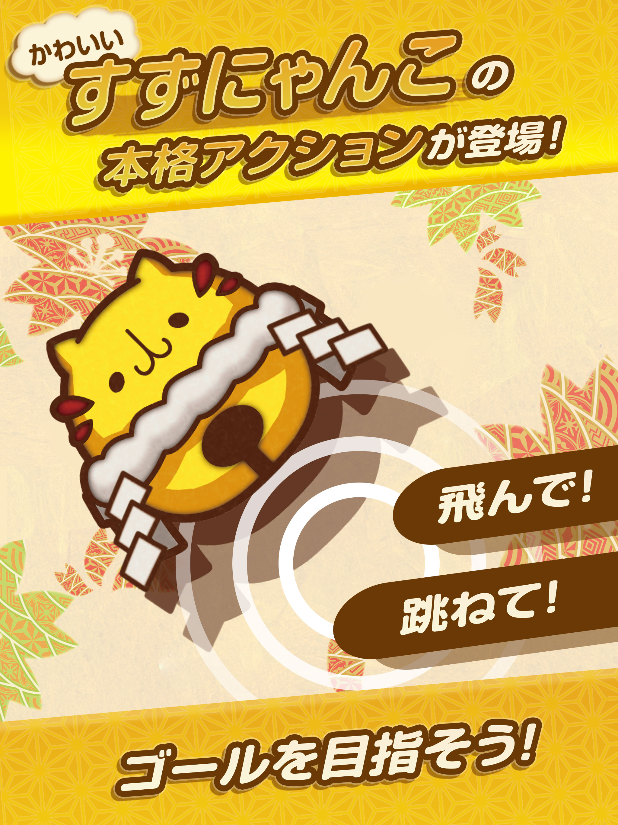 和風なステージを舞台に、かわいい「すずにゃんこ」があっちこっちに跳ねまくる!ゲームのルールはとってもシンプル。画面をタップしたりして、「すずにゃんこ」をゴールまで導きましょう。総ステージ数は100以上!単純だけどやり込める、奥深いゲームとなっています。
