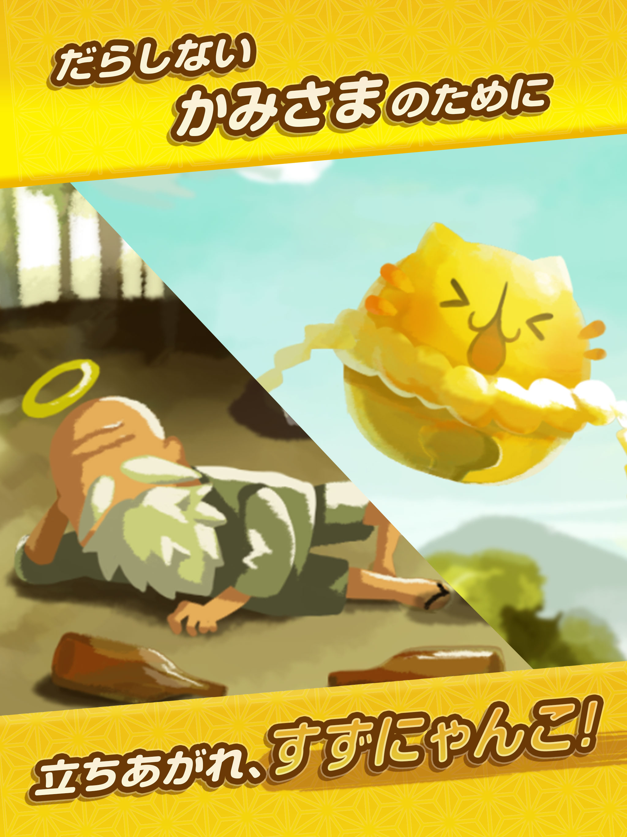 最近、参拝客が少なくなって困ってた「かみさま」。お賽銭がなければ家賃も払えないし、美味しいラーメンも食べることができない…そこでかみさま「すずにゃんこ」にお金を集めてきてもらうことを思いつました。こうして「すずにゃんこ」はだらしない「かみさま」のために、冒険へ旅立ちます。