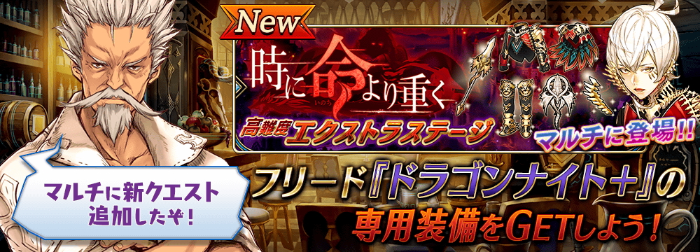 期間限定でマルチにも、高難度エクストラステージが登場します。マルチをクリアすることで、「ドラゴンナイト+」の装備が獲得できます。