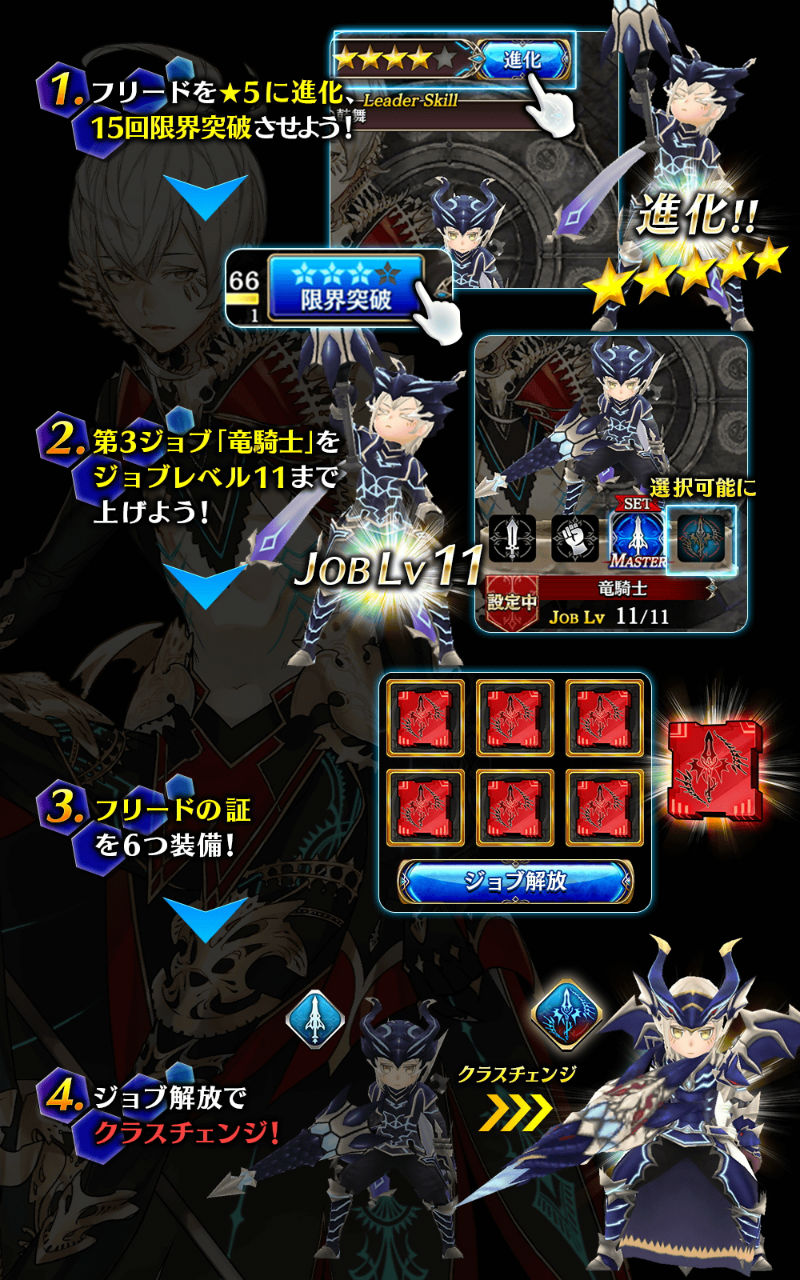 「フリード」は、「ドラゴンナイト」が「ドラゴンナイト+」にクラスチェンジできます。「フリードの証」は新しく追加された、「エクストラステージ」のレコードミッションで獲得できます。