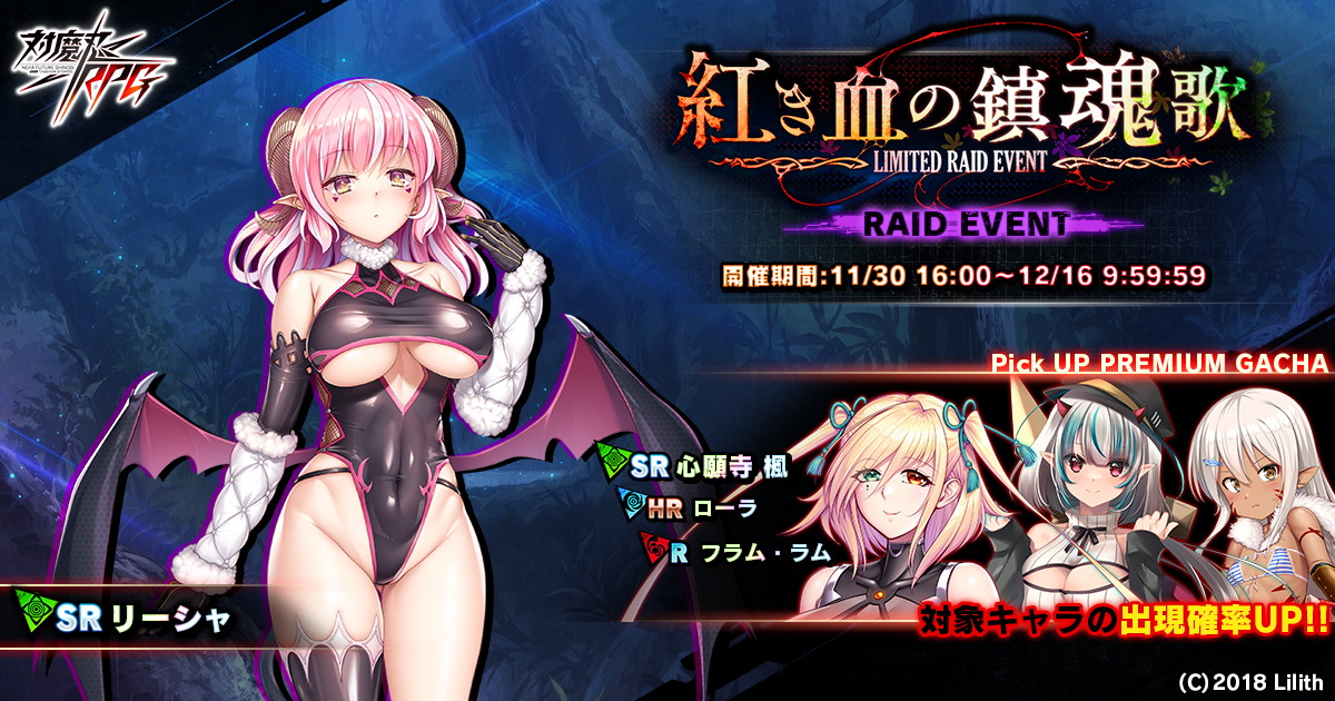 『対魔忍RPG』にて、2023年11月30日(木)16:00より、期間限定レイドイベント「紅き血の鎮魂歌」が開催されます。