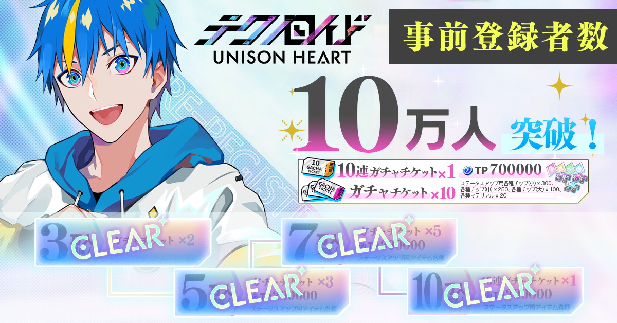 事前登録者数が10万⼈を突破したため、期間中にゲームを開始したユーザー全員に10連プレミアムガチャチケットや、ステータスアップ⽤各種チップ、各種マテリアルなどがプレゼントされます。