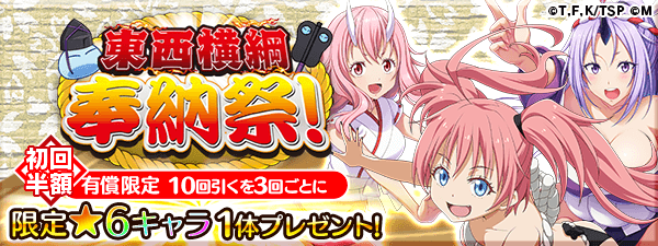 『転生したらスライムだった件 ~魔国連邦創世記~(スラテン)』にて、本日2021年2月26日(金)メンテナンス終了後より、スカウト「東西横綱奉納祭!」が開催されました。