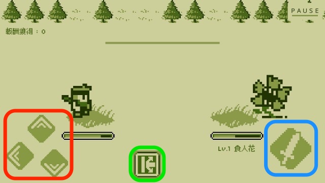 戦闘中の操作はとてもシンプルです。左の上/下/左ボタンで敵の攻撃を回避することが重要になります。