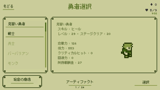 それぞれ違う能力とスキルを持つ、16人の勇者たちを集めて、最後のステージである、ステージ40のクリアを目指しましょう!クリアすると、各勇者ごとに異なるエンディングが待っています。