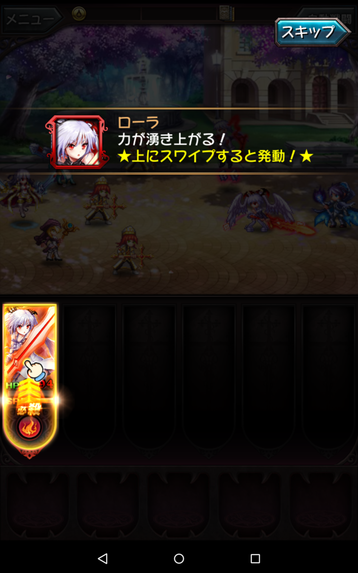 バトルはタップやスワイプの簡単操作で、パーティレベルを5まであげると自動で操作してくれる機能も開放されます。正直、この自動操作はかなり優秀。下手したら自分が操作するよりも上手く敵を倒してくれるというね。