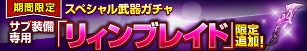 7/7より、サブ装備専用武器「リィンブレイド」が出現するスペシャル武器ガチャが開催中です。
