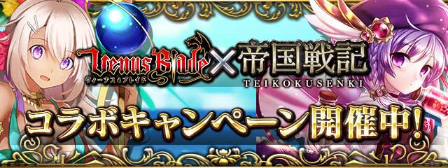 ファンタジーRPG『ヴィーナス†ブレイド(Vブレ)』にて、2019年9月2日(月)16:00より、戦略カードRPG「帝国戦記」とのコラボキャンペーンが開催されました。