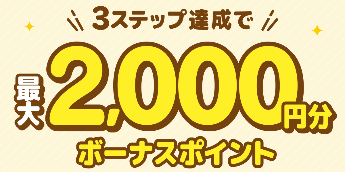 最大2,000ptがもらえるボーナスキャンペーン開催中!