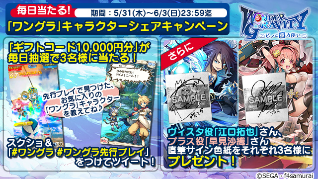Twitterに投稿した方の中から抽選でAmazonギフトコード10000円分が合計12名に当たるほか、キャンペーンに参加した方の中から「ヴィスタ」を演じる江口拓也さん、「プラス」を演じる早見沙織さんの直筆サイン色紙が抽選で各3名に当たります。