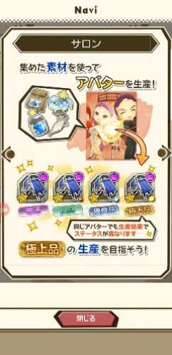 ※「アバター」を作成できる「レシピ&素材」は、「探索クエスト」で手に入ります。