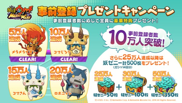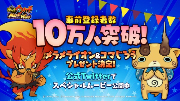 現在、事前登録受付中の『妖怪ウォッチ メダルウォーズ』にて、 事前登録者数が10万人を突破しました。