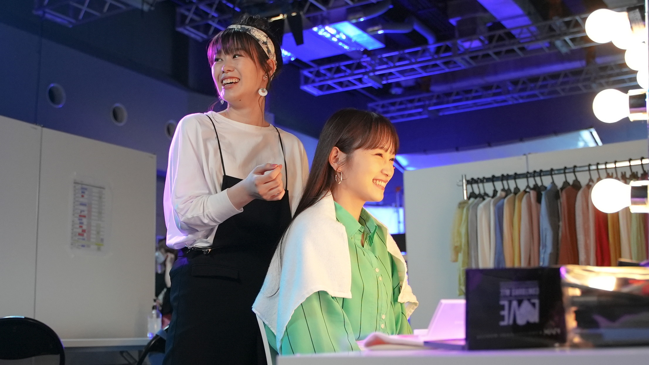 癖の強い演技の応酬で、笑い声が絶えない撮影現場に!ヘアメイクや舞台監督、カメラマンの方々による非常に癖ある演技に対し、川栄さんも強目の反応やアクションを返すことで、一つひとつのシーンに臨場感がもたらされ、強烈な演技の応酬が繰り広げられました。その様子に、川栄さんやスタッフも思わず笑顔が溢れ、笑い声の絶えない撮影現場となりました。