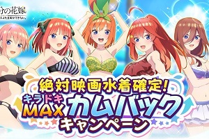 『ごとぱず』- 最大100連無料!「映画五等分の花嫁水着」の★5カードを獲得できる「絶対映画水着確定キラドキMAXカムバックキャンペーン」開催中