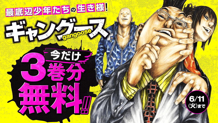 漫画アプリ「マガポケ」にて、2024年6月11日(火)まで、『ギャングース』が3巻分無料配信されています。