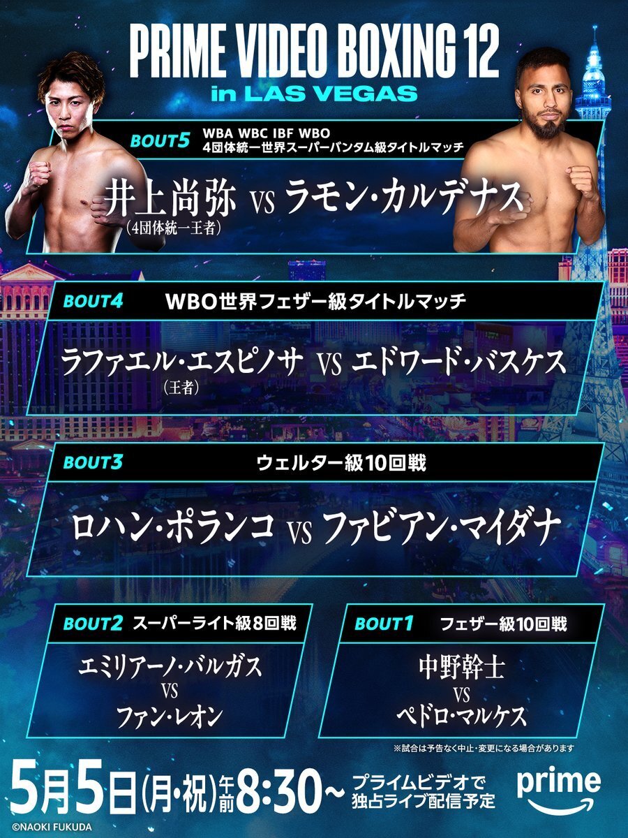 4団体統一王者 井上尚弥(32=大橋) vs ラモン・カルデナス(29=アメリカ)
