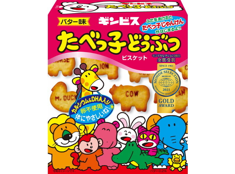 どうぶつ型ビスケットといえばたべっ子どうぶつ!かわいいどうぶつの形に焼き上げた、うす~いサクサクビスケット。親子でコミュニケーションをとりながらおいしく楽しめます。